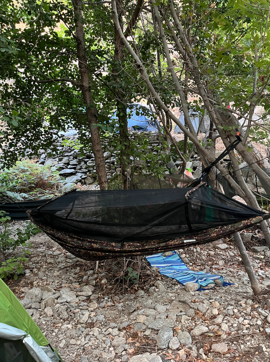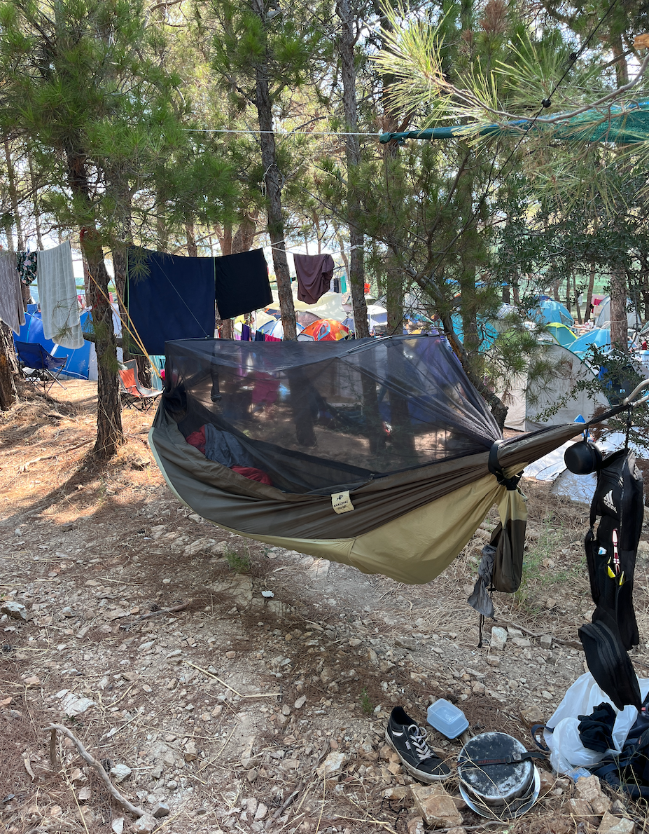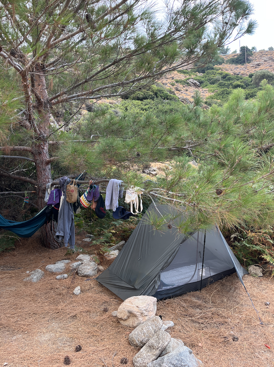 Yunan adalarının birçoğunda kamping seçenekleri mevcut. Belediye ya da kamuya ait kamp alanları genelde daha uygun fiyatlı ve daha güzel konumlarda oluyor. Bu kamplarda ortalama konaklama ücreti olarak 10 avro ödeyerek kalabilirsiniz. Ayrıca kampların hepsinde yemek pişirme ve saklama olanağı sunan bir mutfak bölümü olduğu için yiyeceklerinizi de yakındaki marketlerden alarak kendiniz hazırlayabilirsiniz. Yemek hazırlığında ihtiyacınız olacak bıçağı, eğer yolculuğunuz sırasında bir uçağa binecekseniz, uçakta kabin bagajında izin verilmeyeceği için yanınızda götürmemenizi, vardığınız yerde almanızı öneririm.