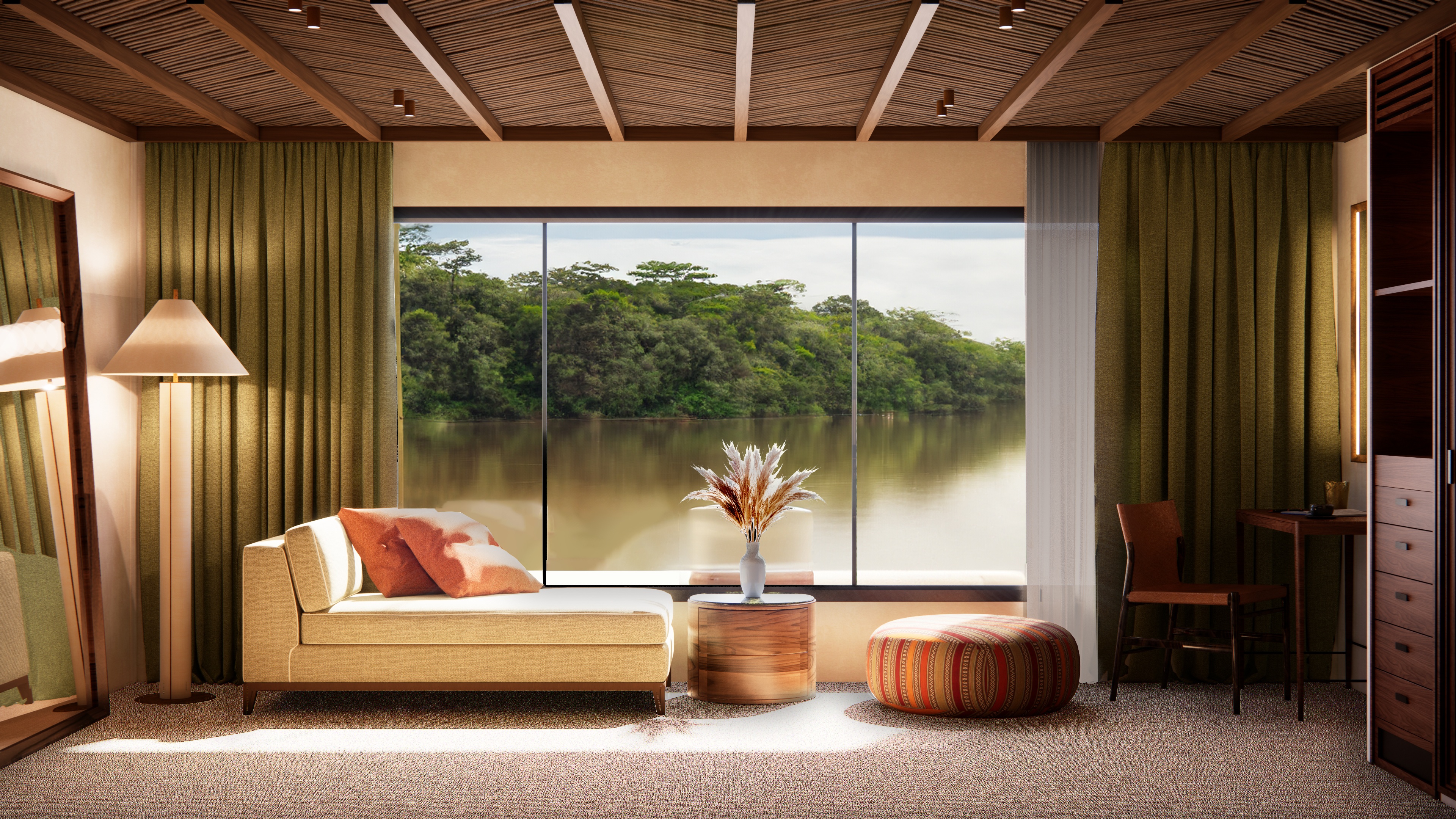 Yüzen küçük bir oteli andıran teknede hepsi klimalı, geniş pencereli ve nehir manzaralı 12 kabin ve süit bulunuyor. Gün içinde zamanın büyük kısmı güvertede ya da botlarla yapılan kısa keşif gezilerinde geçiyor. İsteyenl erken saatlerde kuş gözlemine çıkıyor, isteyen teknede kalıp spa ya da spor salonunda zaman geçiriyor veya manzaranın tadına varıyor.